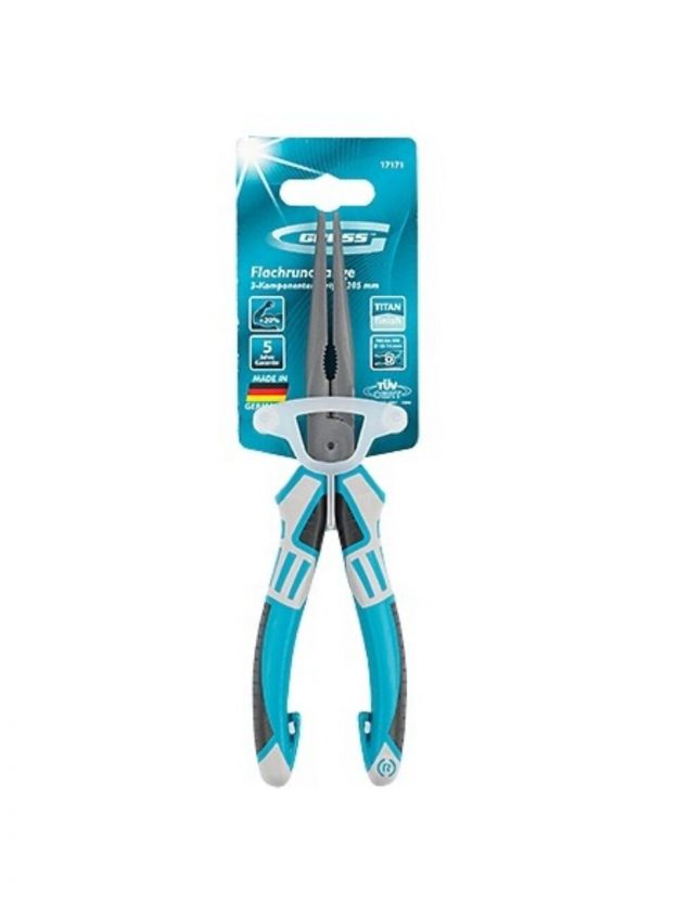 Длинногубцы 205 мм, прямые, трехкомпонентная ручка, Gross, 17171