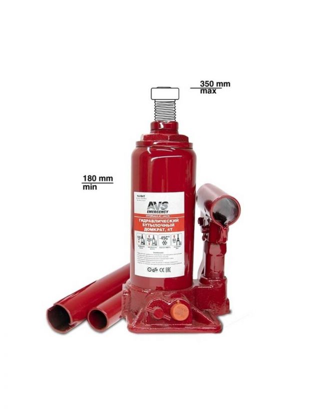 Домкрат бутылочный, гидравлический, 4 т, 180-350 мм, AVS, HJ-B4T
