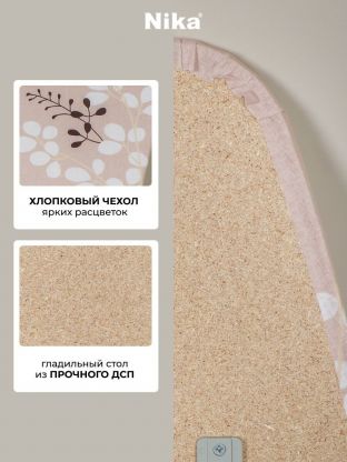 Гладильная доска Nika Лина 4 с рабочей поверхностью из ДСП и чехлом из хлопка – отличный вариант для ежедневного использования. Изделие оснащено выдвижным подутюжником и съёмным подрукавником.