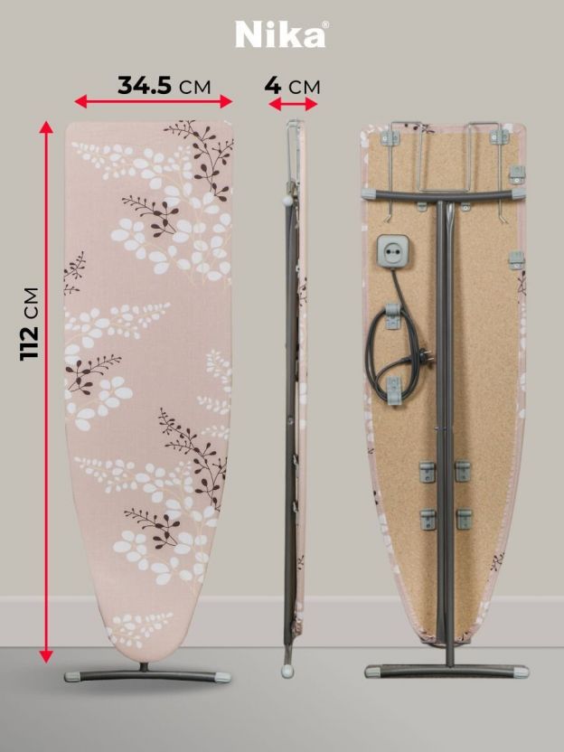Доска гладильная 112х34.5 см, Лина 4, подставка для утюга, гладильный рукав, встроенная розетка, удлинитель 1.6 м, Nika, ДЛ4, в ассортименте
