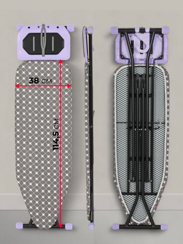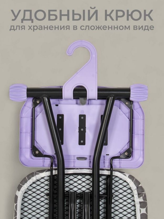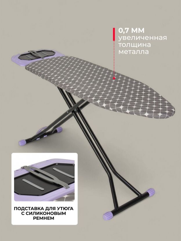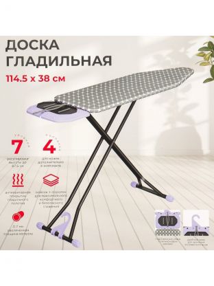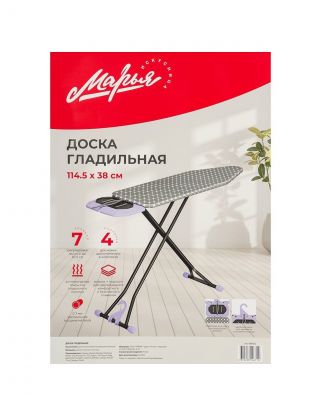 Доска гладильная 114.5х38 см, подставка для утюга, Марья Искусница, RY15, серо-фиолетовая, антипригарное покрытие