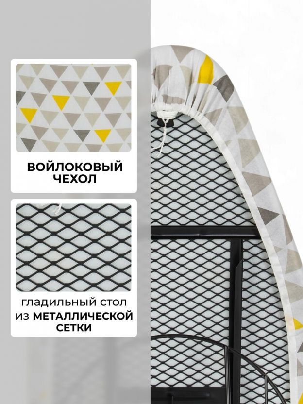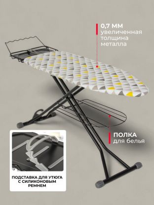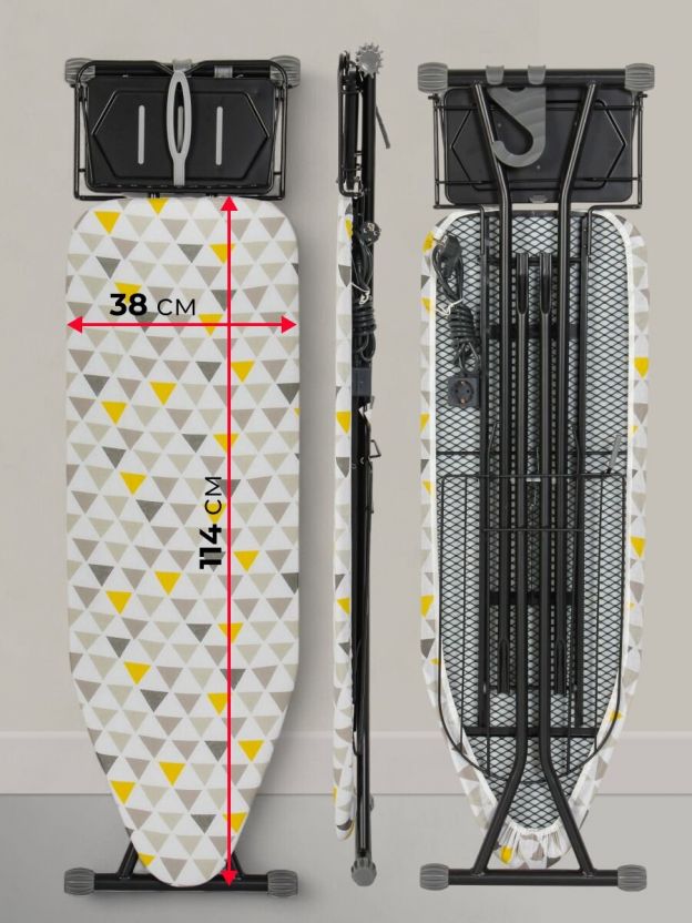 Доска гладильная 114х38 см с розеткой и полкой: комфорт, безопасность и экономия времени для вашего дома и дачи — оптимальный выбор для ежедневных задач.