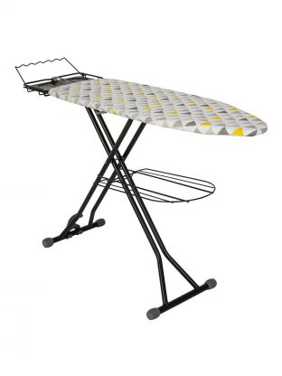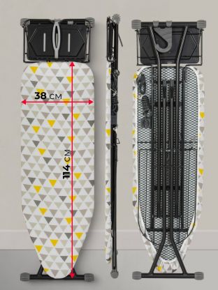 - Прочная металлическая столешница 114x38 см с антипригарным покрытием — долговечность и защита от пригорания ткани