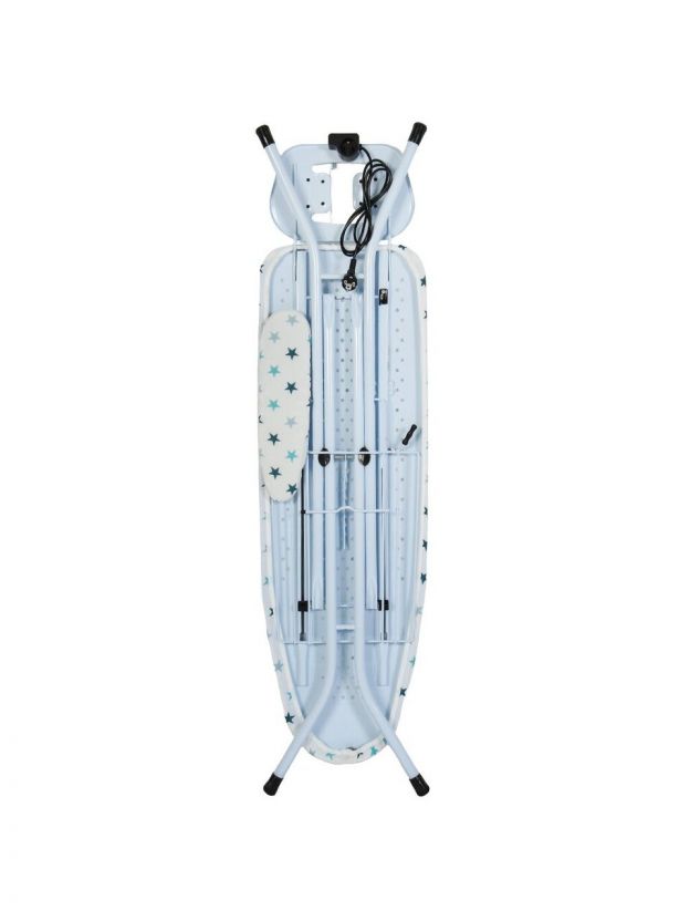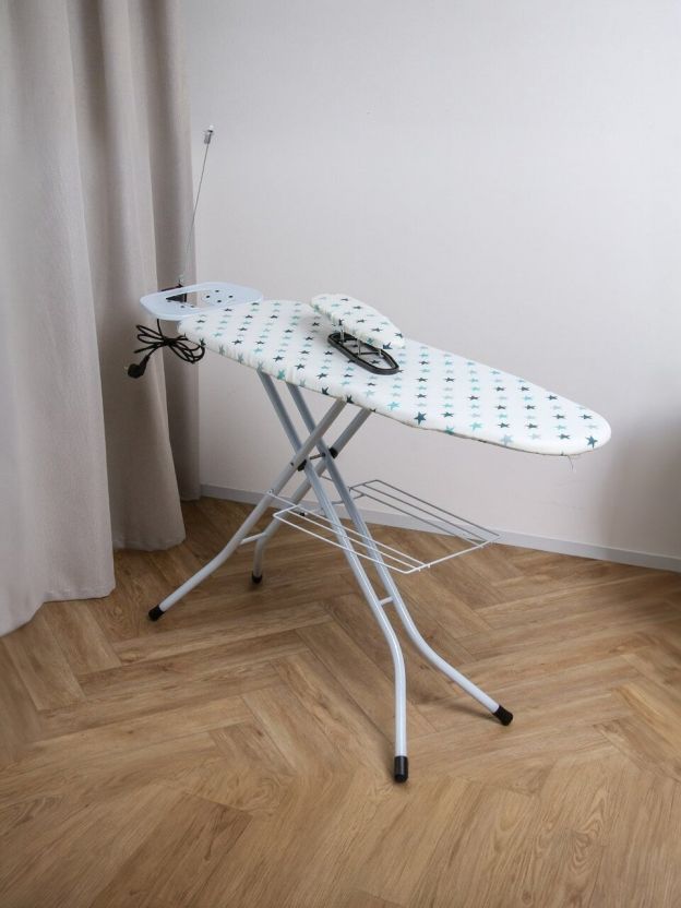 Большая высота до 90 см и два положения регулировки делают доску удобной для пользователей любого роста. Специальная подставка для утюга и кронштейн для провода позволяют организовать рабочее пространство максимально эргономично. Полка для белья экономит место и помогает держать под рукой уже выглаженные вещи. Благодаря складной конструкции доска легко хранится и транспортируется, что особенно актуально для небольших квартир и дачных домов.