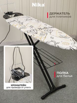 Доска гладильная 122х40 см, Бест, подставка для утюга, встроенная розетка, полка для белья, удлинитель 2.2 м, Nika, НБ, в ассортименте