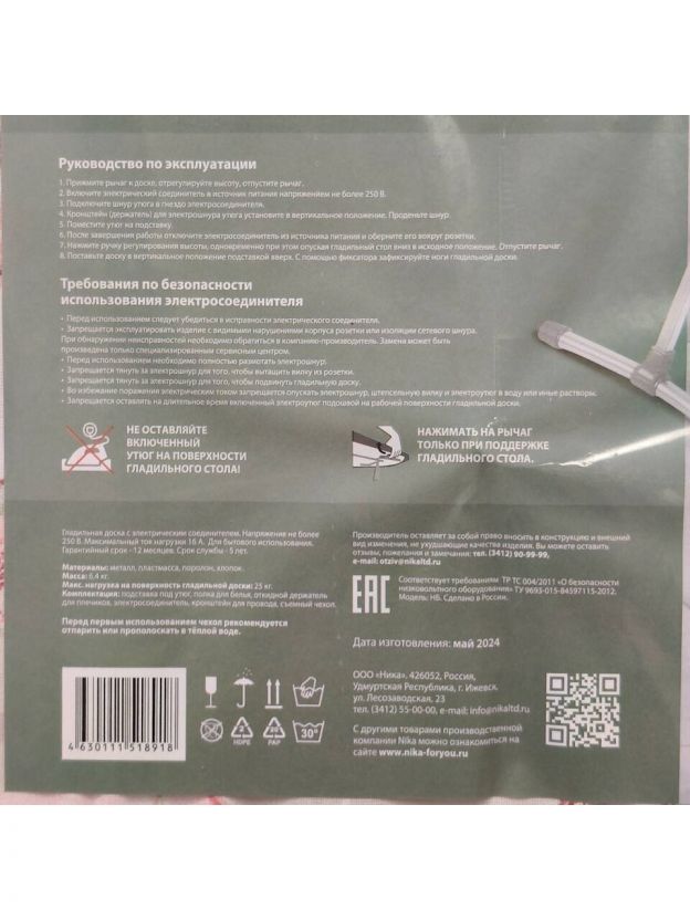 Выбор доски «Бест» от Nika — это инвестиция в комфорт и порядок в доме. Компактные размеры в сложенном виде позволяют удобно хранить изделие, не занимая лишнего места. Легкий вес (6,4 кг) обеспечивает простоту транспортировки и перемещения. Высокое качество материалов гарантирует долгий срок службы, а функциональные решения делают процесс глажки быстрым и легким. Благодаря встроенной розетке и длинному удлинителю отпадает необходимость использовать дополнительные провода или переноски, что особенно актуально для небольших и загруженных пространств. Полка для белья значительно ускоряет процесс, позволяя организовать рабочее место максимально эффективно.