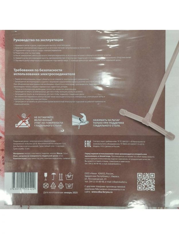 • Максимальная нагрузка на гладильную поверхность: до 25 кг.