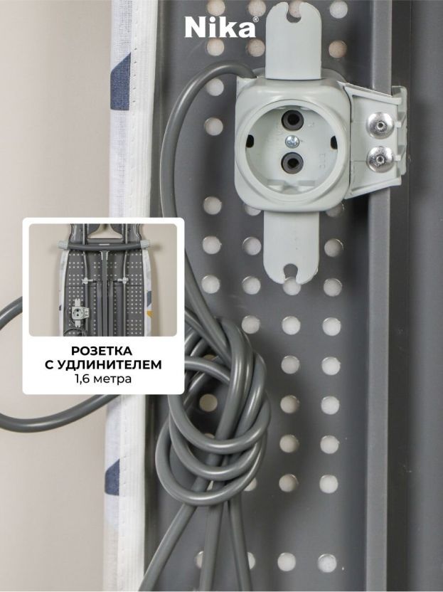 Доска гладильная 122х40 см, подставка для утюга, встроенная розетка, удлинитель 1.6 м, Nika, Н10, в ассортименте