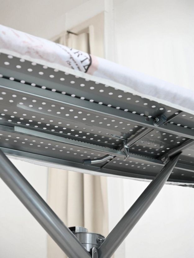 гладильный стол из металлического листа с отверстиями: свободное прохождение и отражение пара;