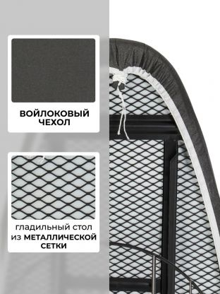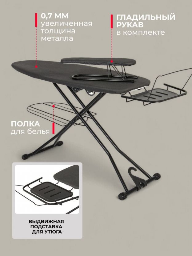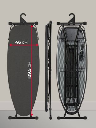 - Увеличенная ширина 46 см и длина 129.5 см — удобно для крупных вещей и быстрой глажки, антипригарное покрытие защищает ткани