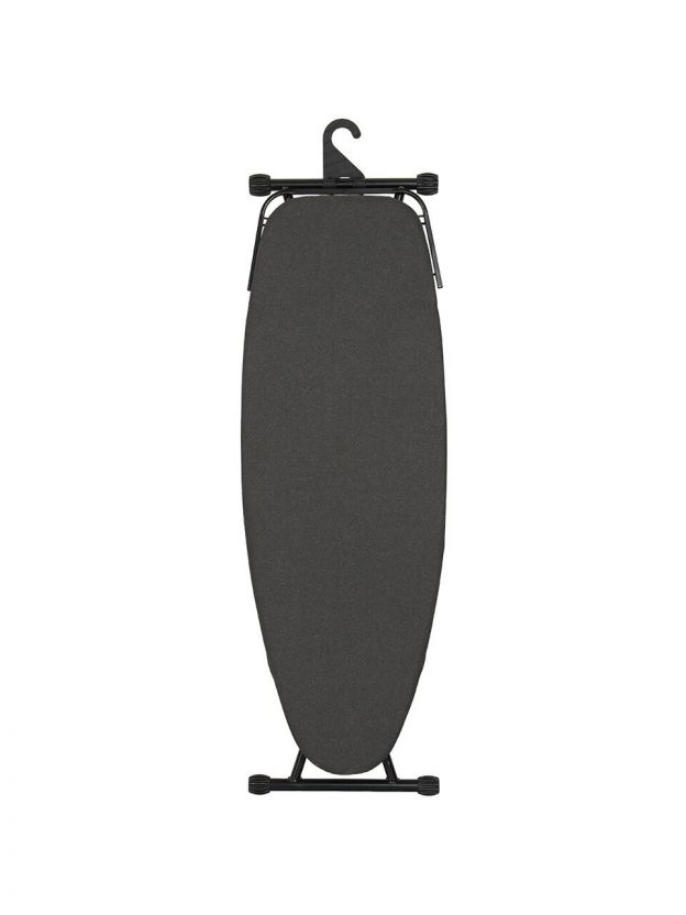 Длина — 129.5 см, ширина — 46 см. Это увеличенный размер, который подходит для глажки крупных вещей и экономит время.
