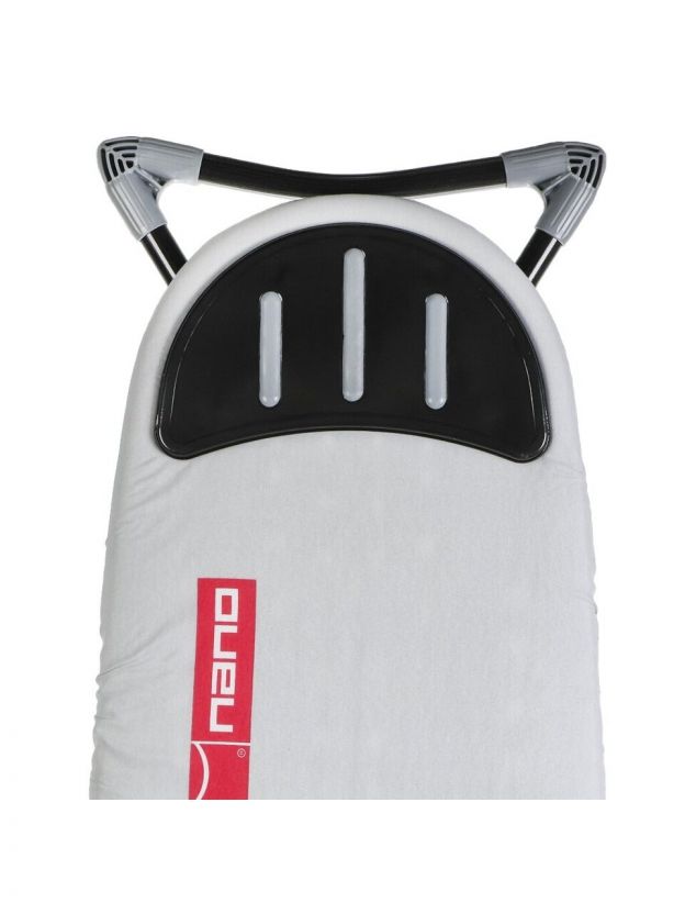 Гладильная доска "Нано" обладает гладильной поверхностью длиной 140 см и шириной 38 см, что позволяет удобно размещать и обрабатывать любые вещи, от рубашек до постельного белья. Металлическая столешница (толщина 0.4 мм) обеспечивает надежность и долговечность, а серый цвет гармонично впишется в любой интерьер.