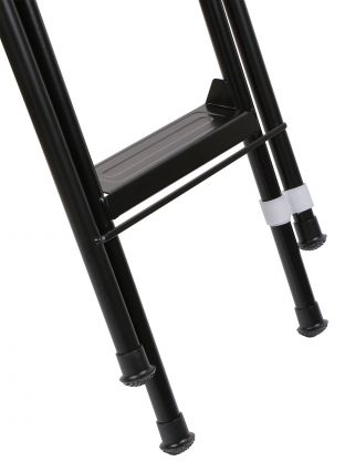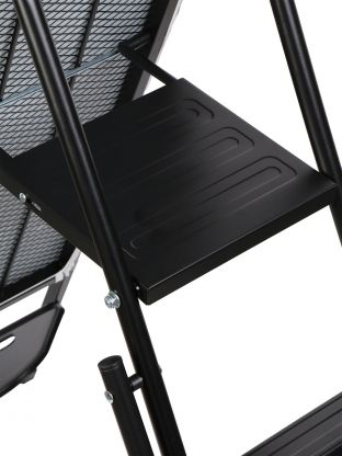 - Прочная металлическая столешница 99x32 см, максимальная высота стремянки — 116 см, выдерживает интенсивное использование.