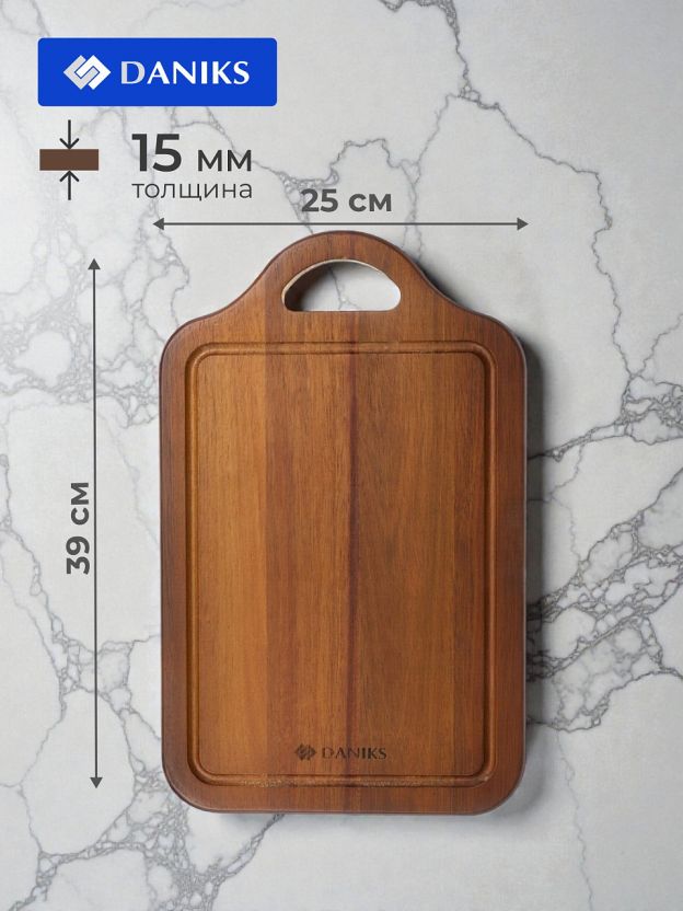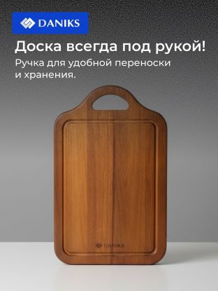 Доска разделочная акация, 39х25х1.5 см, с ручкой, прямоугольная, Daniks, CB14539A