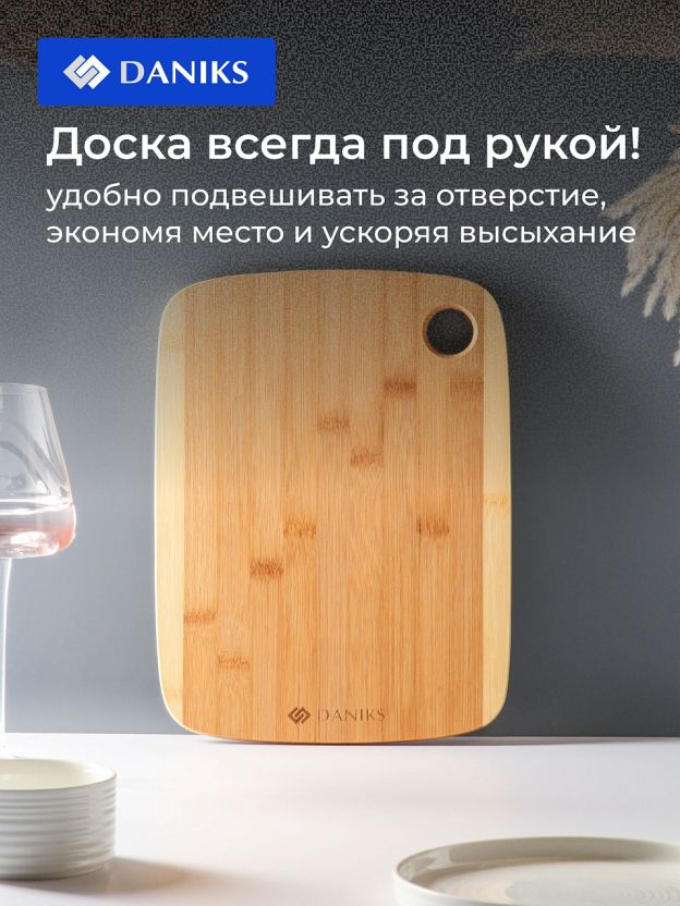 Доска разделочная бамбук, 30.5х23х1 см, прямоугольная, Daniks, Бамбук, H-1568