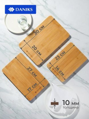 Набор бамбуковых разделочных досок Daniks 3 шт — универсальное решение для кухни: экологичность, прочность, идеальные размеры для любых задач.