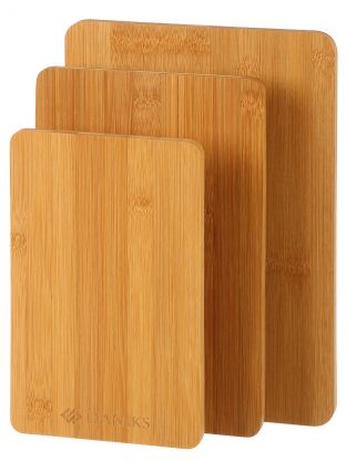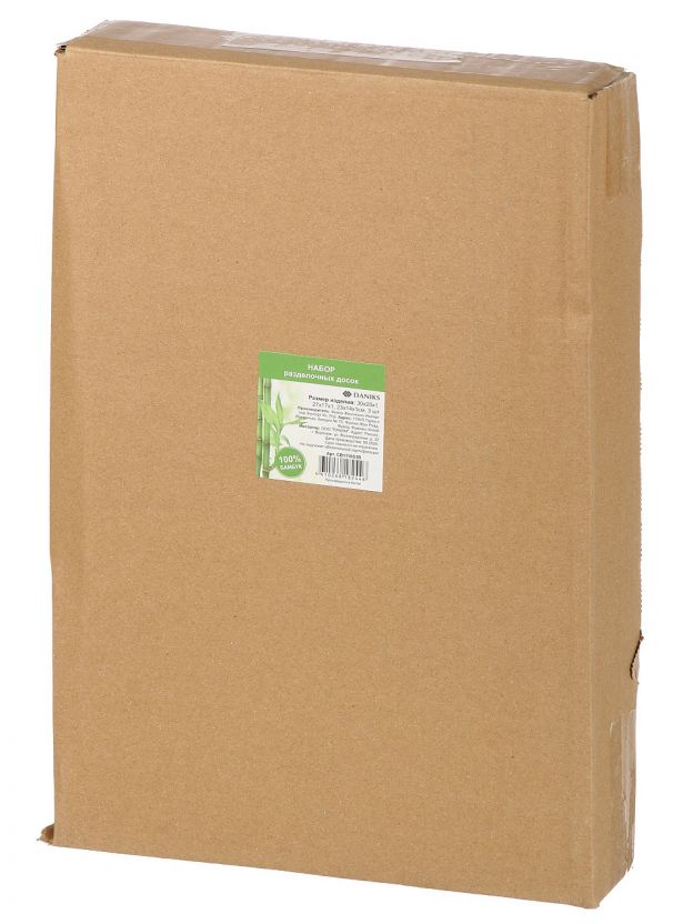 В наборе три доски: большая (30х20х1 см) для мяса и рыбы, средняя (27х17х1 см) — для овощей, маленькая (23х14х1 см) — для фруктов и сыра.
