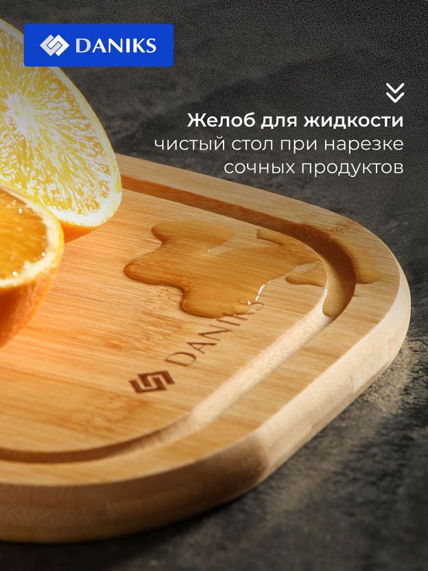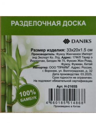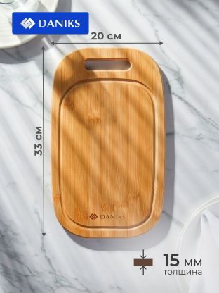 Доска разделочная бамбук, 33х20х1.5 см, с ручкой, прямоугольная, Daniks, H-2165S