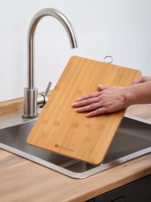 - Доска разделочная имеет удобную ручку для переноски и подвешивания, что позволяет сохранять ее в чистоте и порядке.