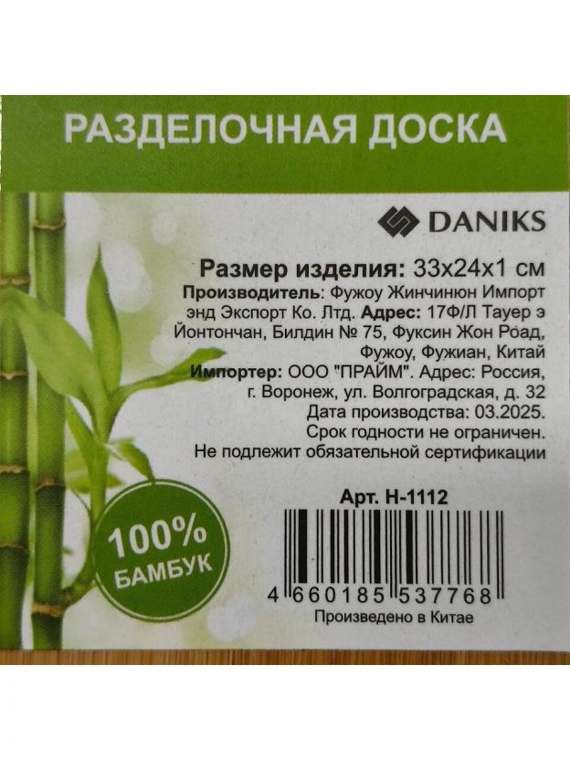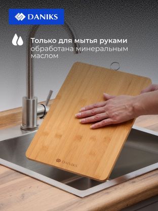 Доска разделочная бамбук, 33х24х1 см, прямоугольная, Daniks, H-1112