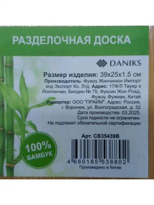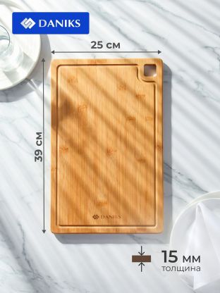 Доска разделочная бамбук, 39х25х1.5 см, прямоугольная, Daniks, CB35439B