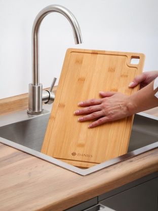 Разделочной доске из бамбука не страшны температурные нагрузки. Ее можно использовать и как подставку под горячее, и как доску для заморозки домашних пельменей, на ее рабочих характеристиках это никак не скажется.