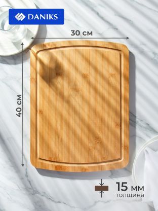 Доска разделочная бамбук, 40х30х1.5 см, прямоугольная, Daniks, H-1765