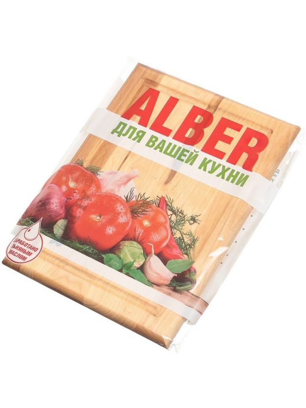 Доска разделочная дерево, 24х18х1.8 см, с кровостоком, прямоугольная, Alber, 80003