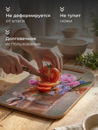 Деревянная разделочная доска - универсальный помощник на кухне, который "подставит вам плечо" в нужный момент. Нарезка фруктов, шинкование овощей, разделка рыбы и птицы - на разделочной доске легко выполняются любые кулинарные задания. Уход за разделочной доской из фанеры несложен: чтобы она не впитала ненужный запах, после использования доску нужно промыть горячей водой, а затем очень тщательно протереть бумажным или хлопчатобумажным полотенцем.