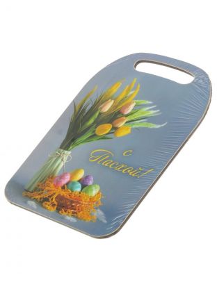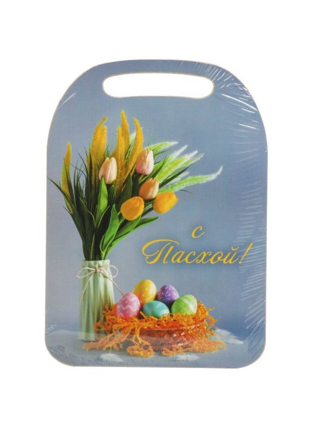 Доска разделочная дерево, 29х21х0.6 см, с ручкой, прямоугольная, С Пасхой, К-294