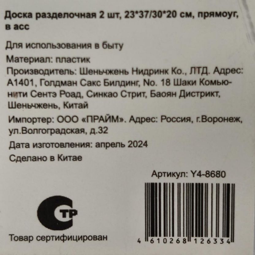 Доска разделочная пластик, 23х37, 30х20 см, 2 шт, в ассортименте, прямоугольная, Y4-8680