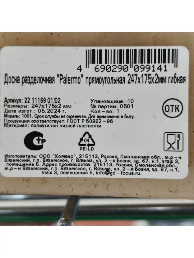Доска разделочная Palermo прямоугольная делает процесс приготовления еды быстрее и приятнее. На гибкой доске можно нарезать продукты, а после согнуть ее и переложить нарезанное в блюдо или кастрюлю, не рассыпав содержимое. Доска в прозрачном цвете с вкраплениями под «крафт» создаст атмосферу в стиле рустик в вашем доме. Мягкий, гибкий и прочный материал, из которого сделана доска, сохраняет ножи острыми, в том числе керамические. Содержит до 5% древесной стружки, которая придает изделиям натуральный коричневый оттенок и приятный аромат. Температурный режим: -20 +60°С.