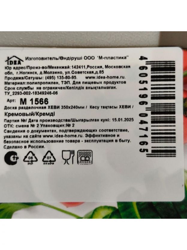 Покупая разделочную доску «Idea Хеви», вы получаете не только качественный товар, но и уверенность в том, что приготовление пищи станет более приятным и эффективным процессом. Эта доска поможет вам экономить время и силы, предоставляя удобную и безопасную поверхность для нарезки. Пластик, из которого она изготовлена, не впитывает запахи и легко очищается, что делает уход за ней простым и быстрым.