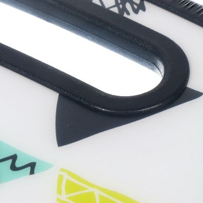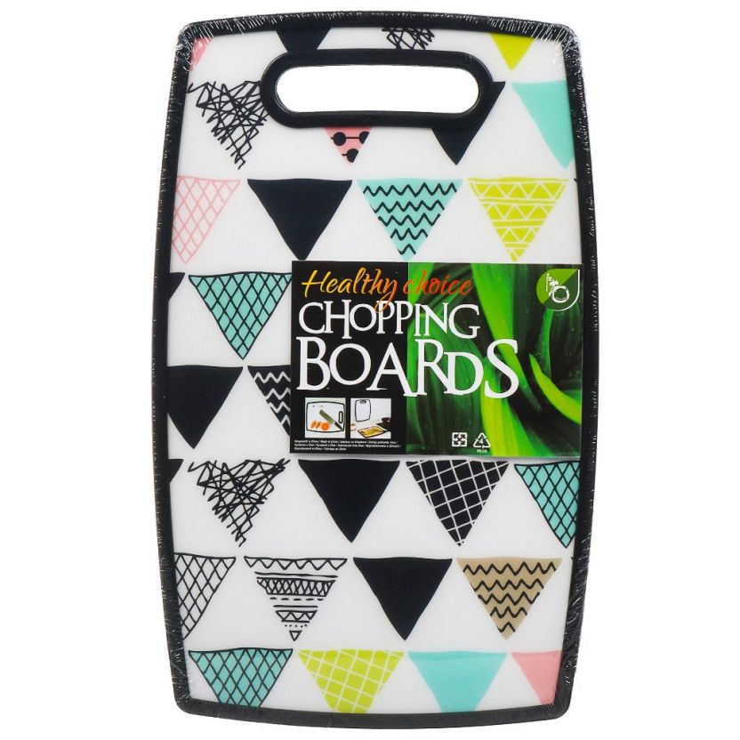Доска предназначена для разделывания и нарезания различных продуктов: зелени, овощей, фруктов, мяса и рыбы. Имеет форму с выгнутыми краями. Изделие оснащено ручкой для удобного захвата и хранения в подвешенном состоянии. Материал безопасен и химически нейтрален. Доска легко моется обычными моющими средствами и долго остается яркой.