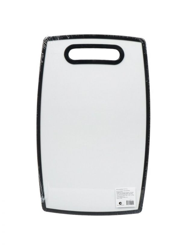 Доска предназначена для разделывания и нарезания различных продуктов: зелени, овощей, фруктов, мяса и рыбы. Имеет форму с выгнутыми краями. Изделие оснащено ручкой для удобного захвата и хранения в подвешенном состоянии. Материал безопасен и химически нейтрален. Доска легко моется обычными моющими средствами и долго остается яркой.