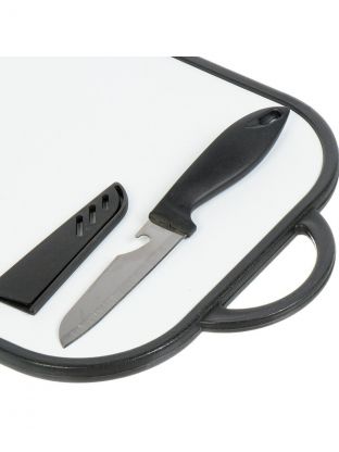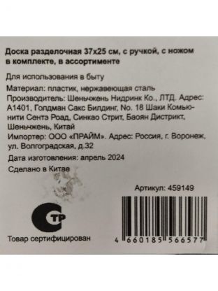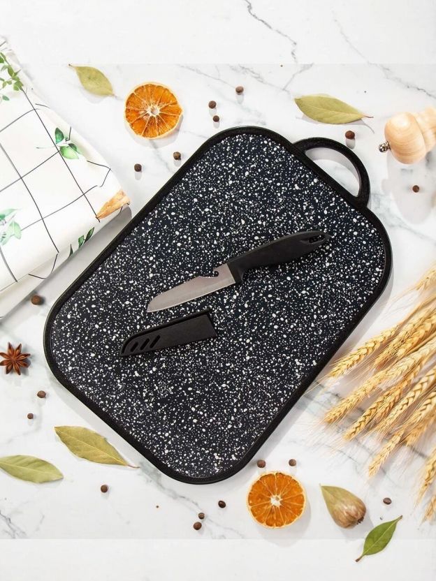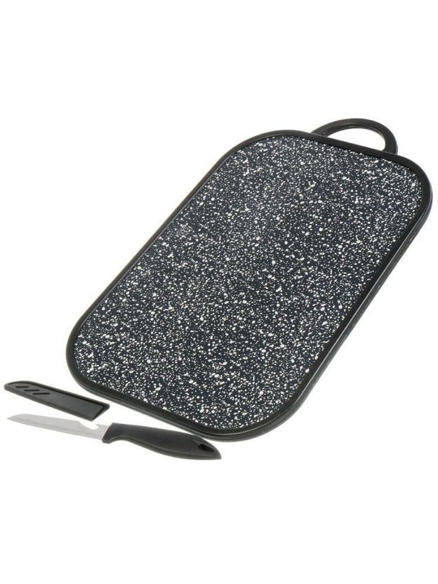 Доска разделочная пластик, с ножом, 37х25 см, с ручкой, в ассортименте, прямоугольная, Камень, Y4-7877