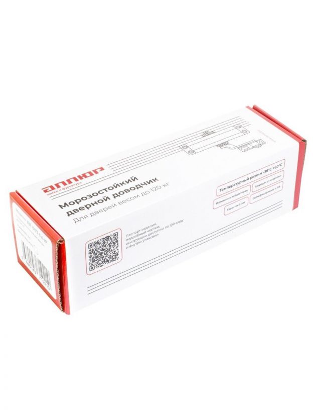Доводчик дверной Аллюр, Comfort ДД 168/3-5 A-W, -38 °C +60 °C, морозостойкий, до 120 кг, белый, 16682