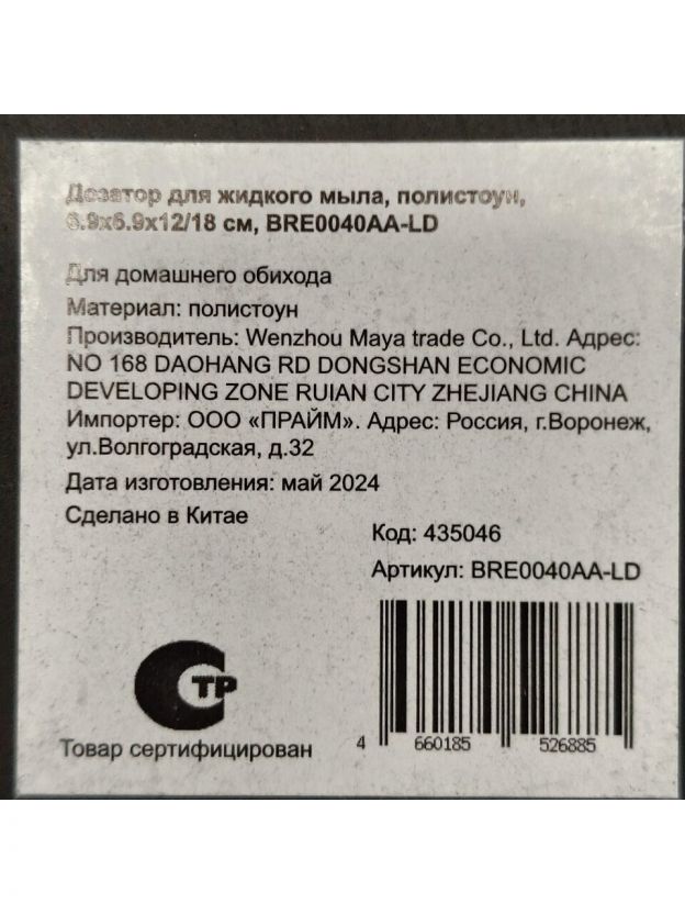 Дозатор для жидкого мыла, Мрамор Престиж, полистоун, 6.9x6.9x12/18 см, BRE0040AA-LD