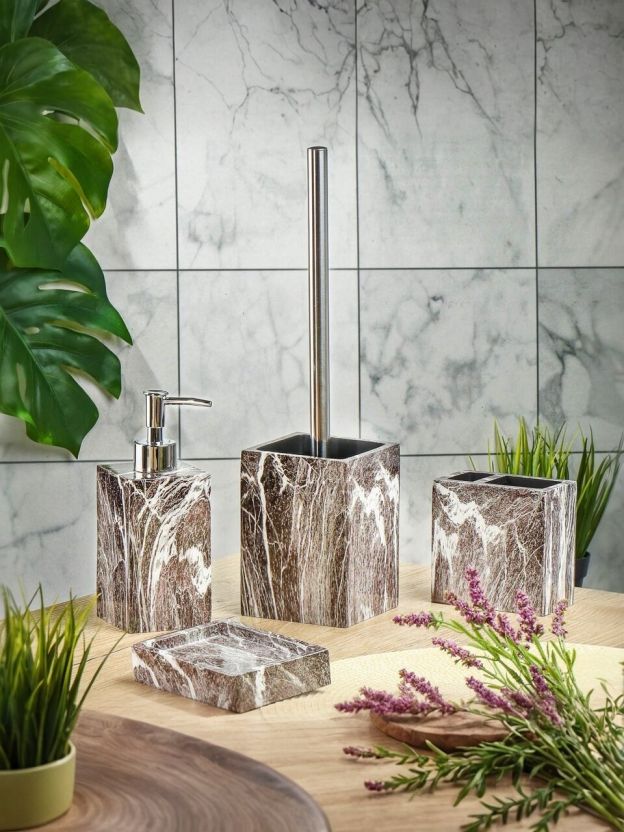 Дозатор для жидкого мыла можно приобрести вместе с другими аксессуарами для ванной, собрав единый по цвету и стилю комплект.