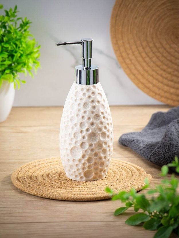 Погрузитесь в атмосферу уюта и стильного комфорта с дозатором для жидкого мыла "Пузырьки". Этот аксессуар станет не только функциональной частью ванной комнаты, но и ее элегантным украшением. Изготовленный из полистоуна, дозатор обладает высокой прочностью и устойчивостью к повреждениям, что делает его надежным помощником в повседневной гигиене.