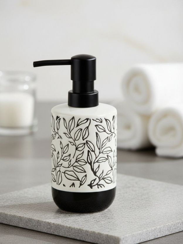 Этот керамический дозатор для жидкого мыла — идеальное решение для тех, кто ищет стиль и удобство в деталях ванной комнаты. Благодаря универсальному черно-белому оформлению аксессуар легко вписывается в современные и классические интерьеры. Керамика отличается долговечностью, устойчива к перепадам температуры и влаге, что особенно важно для использования в душевой зоне или на кухне.