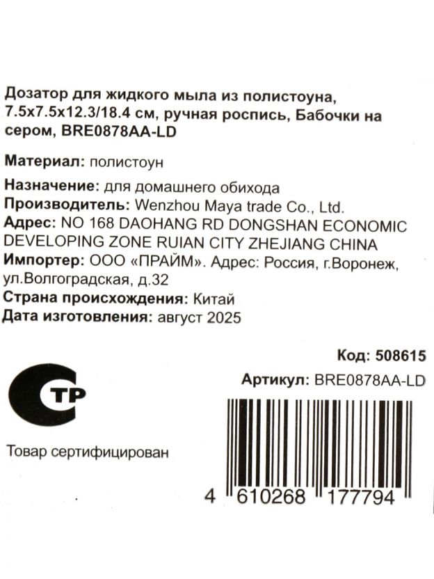 Дозатор для жидкого мыла из полистоуна «Бабочки на сером» — это не просто аксессуар, а функциональное украшение для ванной или кухни. Благодаря ручной росписи каждый экземпляр уникален, что выгодно отличает его от стандартных пластиковых дозаторов. Если вы ищете, какой дозатор выбрать для частого использования, обратите внимание на полистоун: он устойчив к влаге, не деформируется и сохраняет внешний вид даже при интенсивной эксплуатации.
