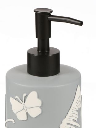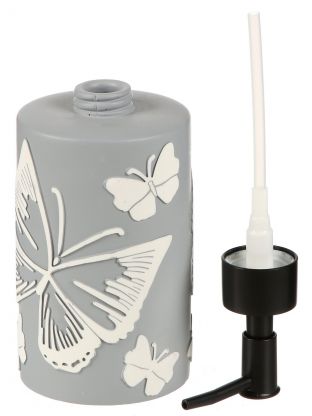 Дозатор для жидкого мыла для ванной и кухни, Бабочки на сером, полистоун, 7.5х7.5х12.3/18.4 см, ручная роспись, серый, BRE0878AA-LD