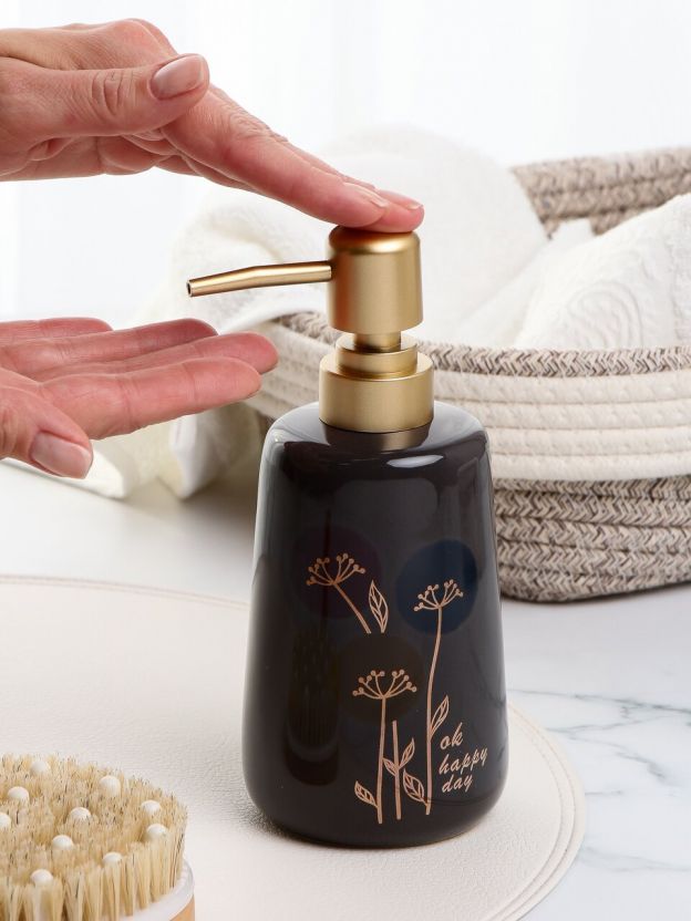 Дозатор для жидкого мыла из керамики «Цветы на сером» Y4-9865 — стильный акцент для ванной, который прослужит долго и идеально впишется в любой интерьер.