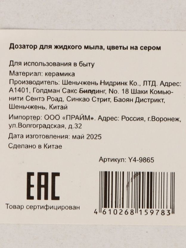 Дозатор выполнен из керамики, страна продавца — Китай. Керамика устойчива к влаге, не впитывает запахи и проста в уходе.