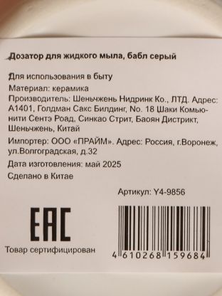Дозатор для жидкого мыла керамический — это не только удобство, но и элемент декора. Благодаря материалу, изделие не подвержено коррозии и легко очищается. Цвет бабл серый актуален для современных интерьеров, а компактные размеры (7х7х17,5 см) позволяют разместить аксессуар даже в небольшой ванной комнате или на кухне.