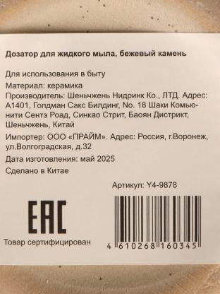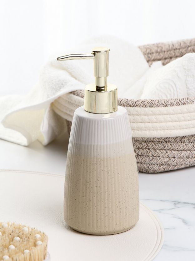 Дозатор для жидкого мыла Y4-9878 из керамики под бежевый камень: стильный акцент для ванной, долговечность и универсальность по доступной цене.