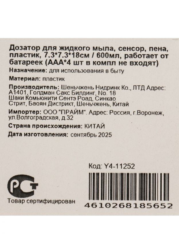 Многие интересуются, подходит ли такой дозатор для дачи или офиса. Благодаря компактным размерам (7.3х7.3х18 см) и объёму 0.6 литра, он не требует частого пополнения и легко размещается даже на небольшой полке. Пластиковый корпус устойчив к влаге и прост в уходе. В отличие от ручных моделей, сенсорная технология делает использование максимально гигиеничным и современным.