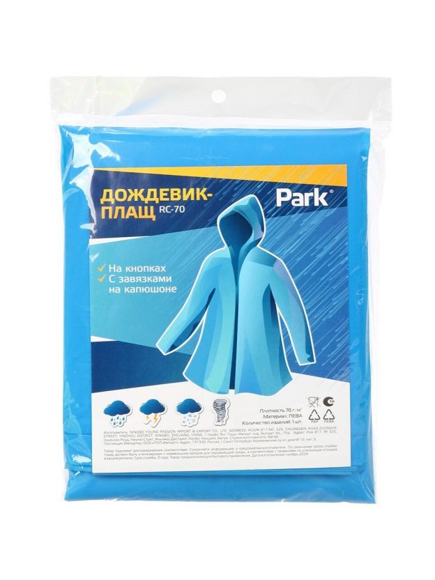 Дождевик плащ 130х140см голубой размер L RC-70 — стильная и надежная защита от дождя для прогулок, дачи и путешествий. Легкий материал ПЕВА обеспечивает комфорт, не сковывает движения и легко складывается. Универсальный размер L и удобный капюшон с застежкой на кнопках делают изделие практичным выбором для любого сезона.