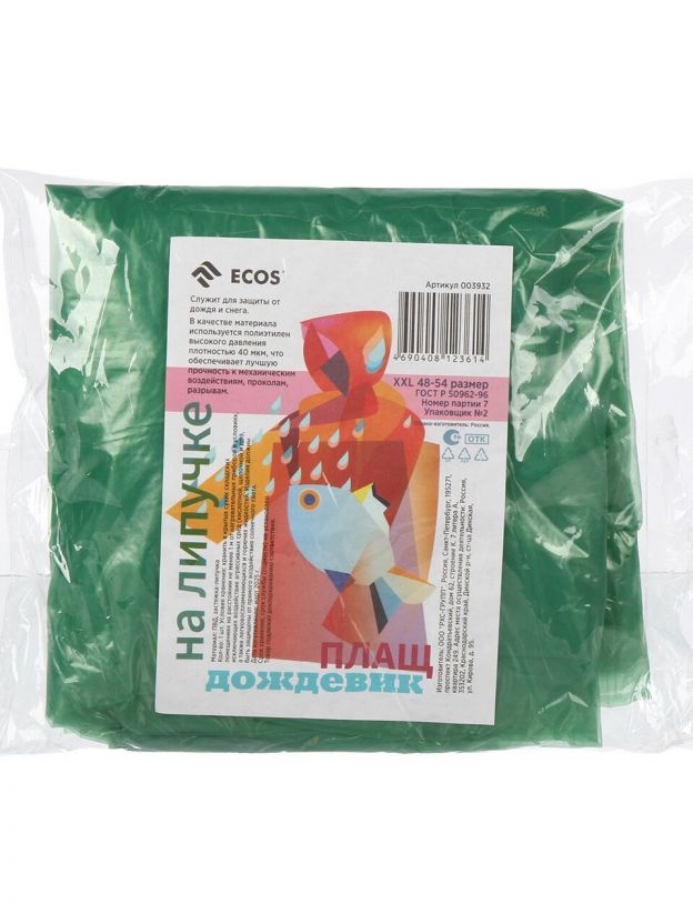 Дождевик-плащ Ecos XXL 48-50: защита от дождя для дачи, прогулок и путешествий — удобно, компактно, выгодно купить недорого!